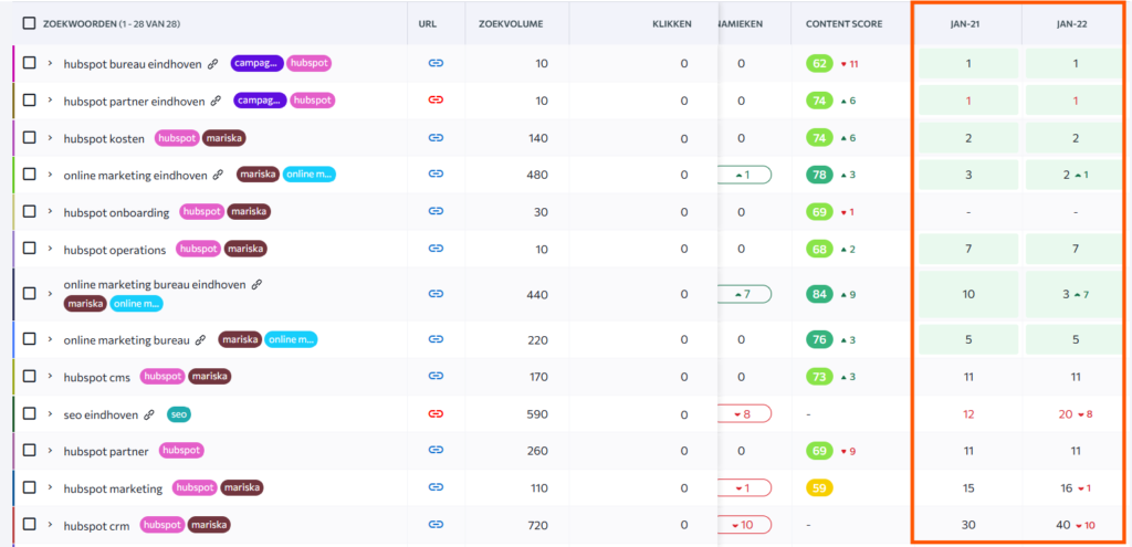 Dan kan ik met je meekijken. Niet alleen naar hoe hoog je nu staat in Google, maar vooral naar: